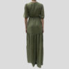 Abito elegane in chiffon,con scollo e manica a palloncino.La conna è comoda con tre balze.
